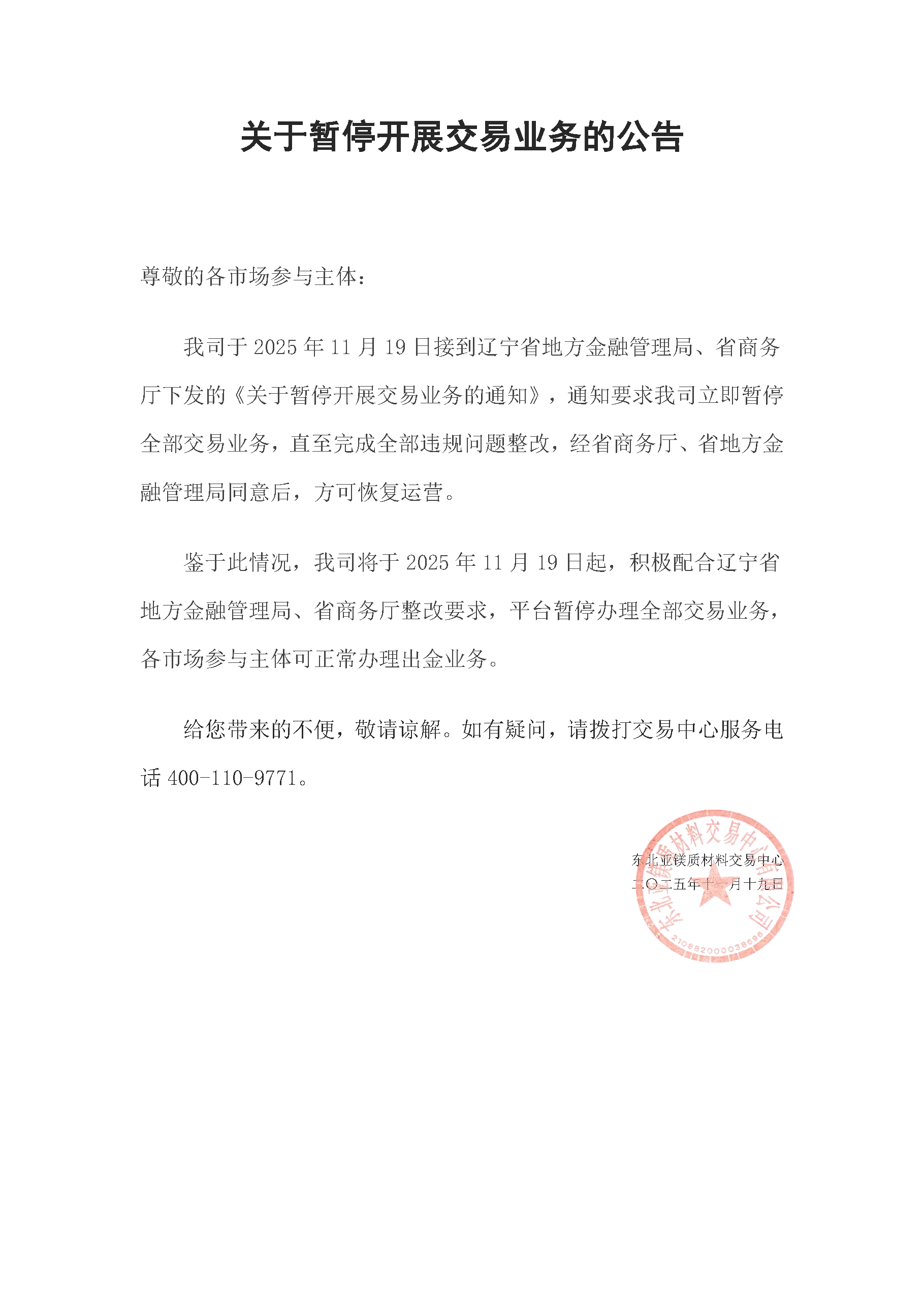 關(guān)于暫停開展交易業(yè)務(wù)的公告