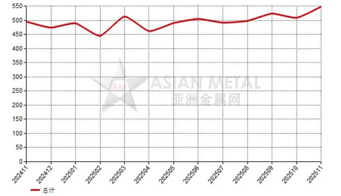 2025年1-11月,中國累計(jì)出口電熔鎂砂506,435.12公噸,去年同期為468,656.08公噸,同比上漲8.06%。