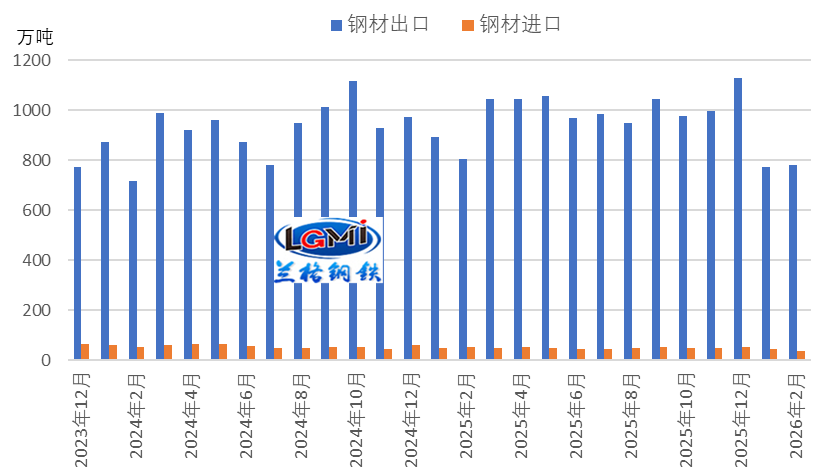 回顧1-2月鋼材出口下滑的核心原因,主要是2026年1月1日起實施的鋼鐵出口許可證新政,導(dǎo)致企業(yè)訂單縮減、交付節(jié)奏延后,我國鋼材出口階段性承壓回落。
