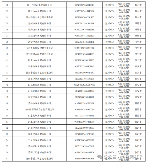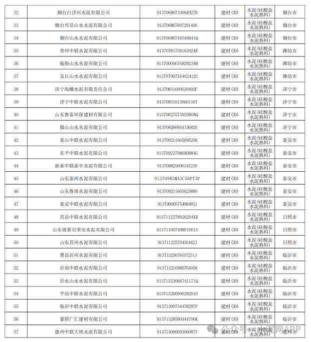 2024年及2025年硅酸鹽水泥行業(yè)包含57家水泥企業(yè):