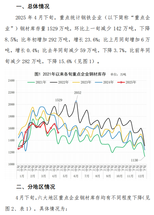 4月下旬重點企業(yè)鋼材庫存旬報